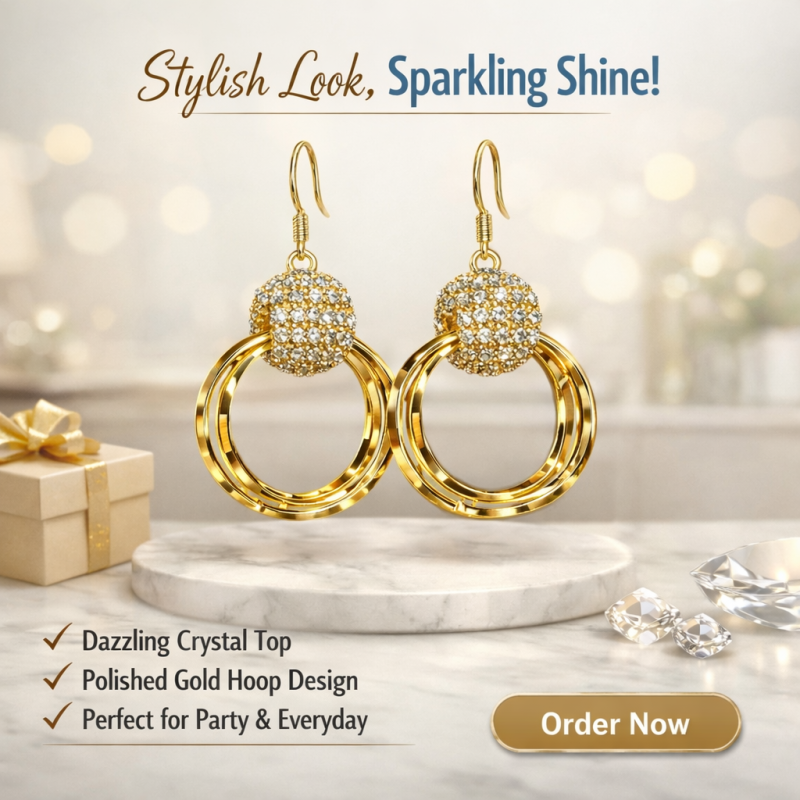 এই ইয়াররিংটা প্রথম দেখাতেই চোখে পড়ে—কারণ এটা শুধু অলংকার না, এটা আপনার স্টাইলের নীরব স্টেটমেন্ট। ঝলমলে ক্রিস্টাল আর এলিগ্যান্ট গোল্ডেন ফিনিশ একসাথে মিলিয়ে প্রতিটা মুভমেন্টে দেয় সফট গ্ল্যাম শাইন। সাধারণ পোশাকেও এটা মুহূর্তেই এনে দেয় প্রিমিয়াম লুক।